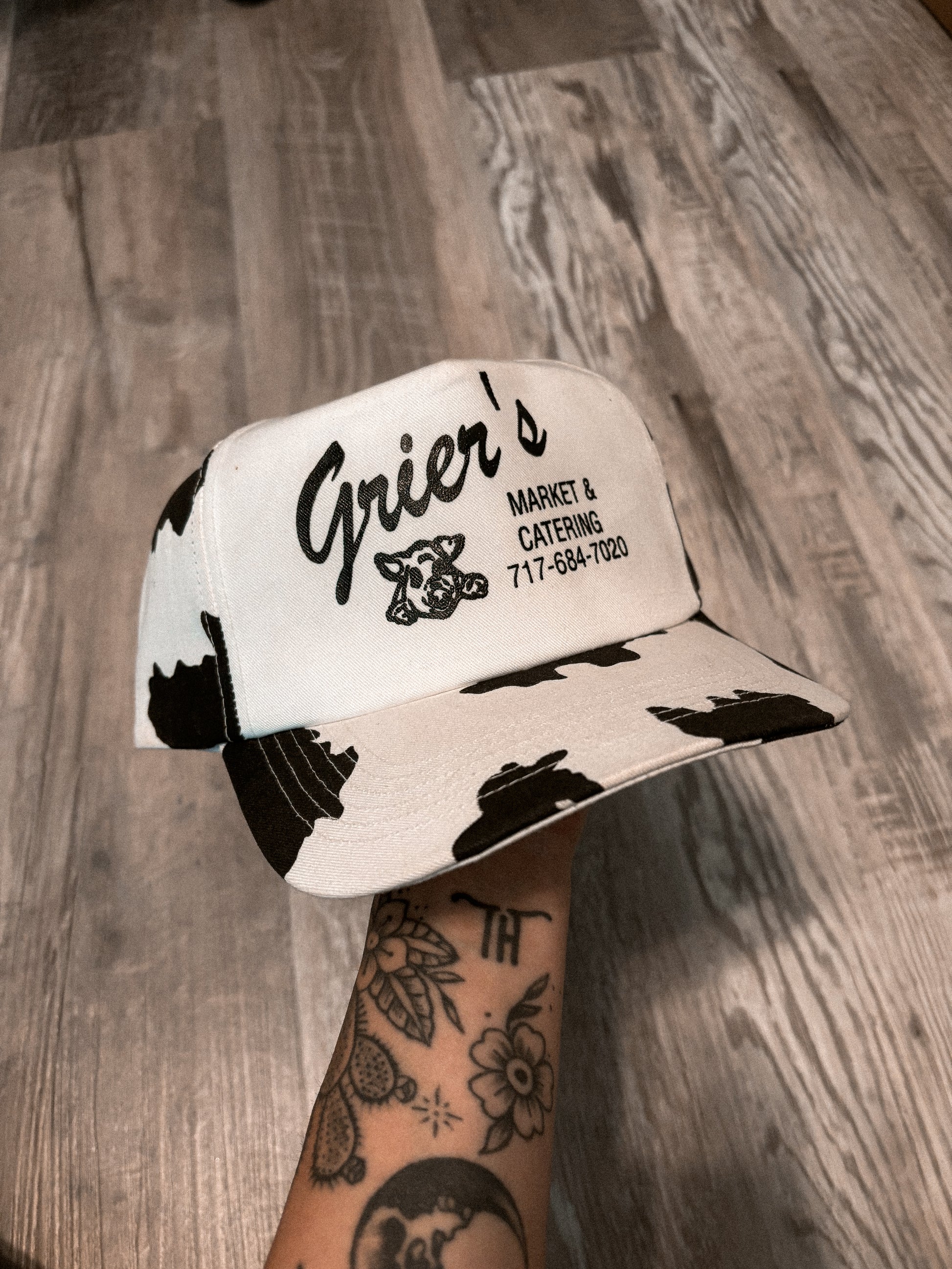 GRIER’S MARKET & CATERING COWPRINT TRUCKER SNAPBACK HAT *VINTAGE*