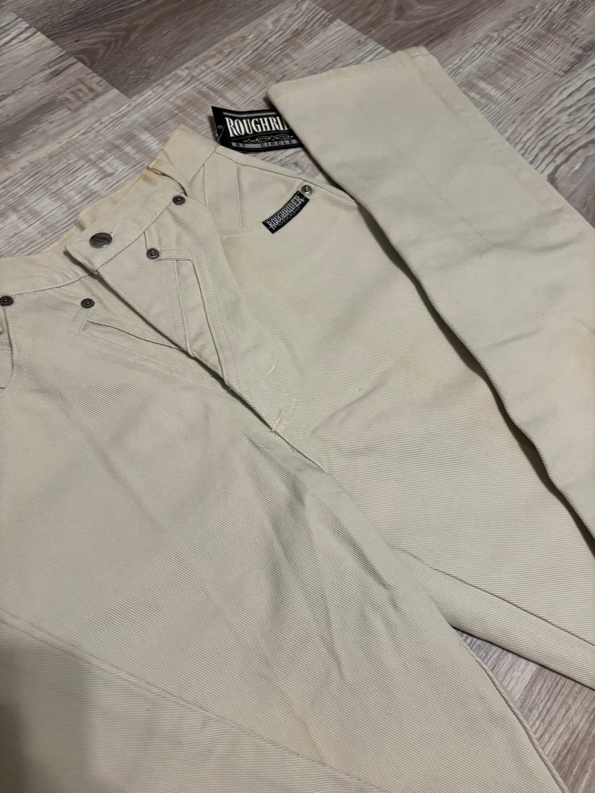*VINTAGE, DEADSTOCK* 26” KHAKI ROUGHRIDER BAREBACK JEANS