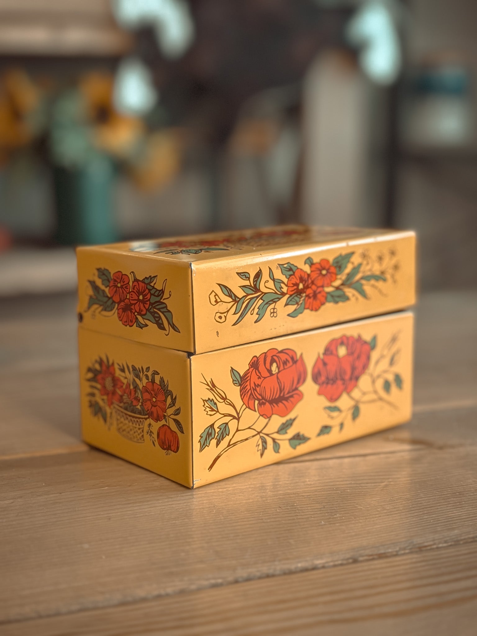 *VINTAGE* YELLOW & ORANGE FLORAL RECIPE TIN BOX